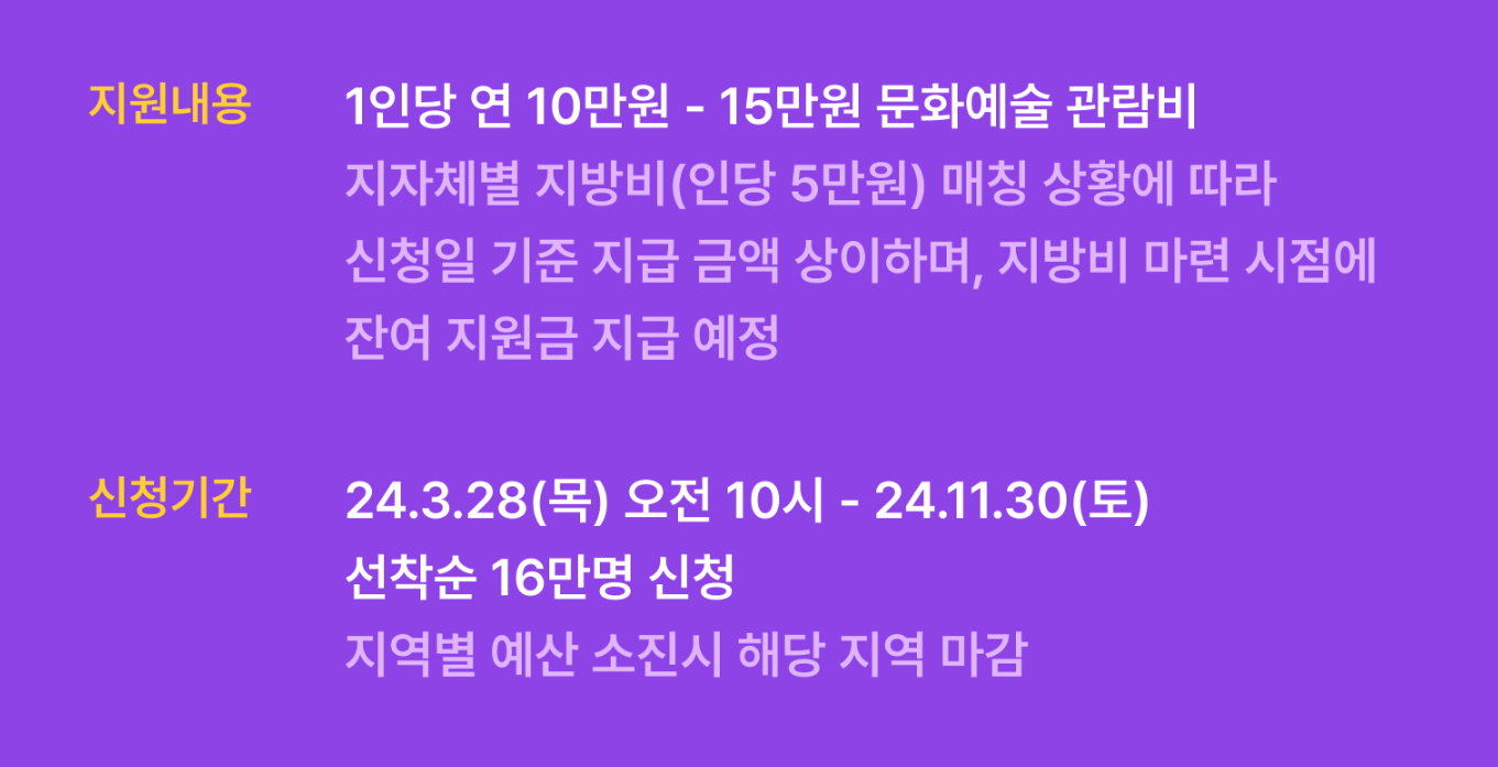 오늘은 이 청년문화예술패스의 신청방법, 지원방법, 지원금액, 사용방법 등에 대해서 정리해 보았습니다.