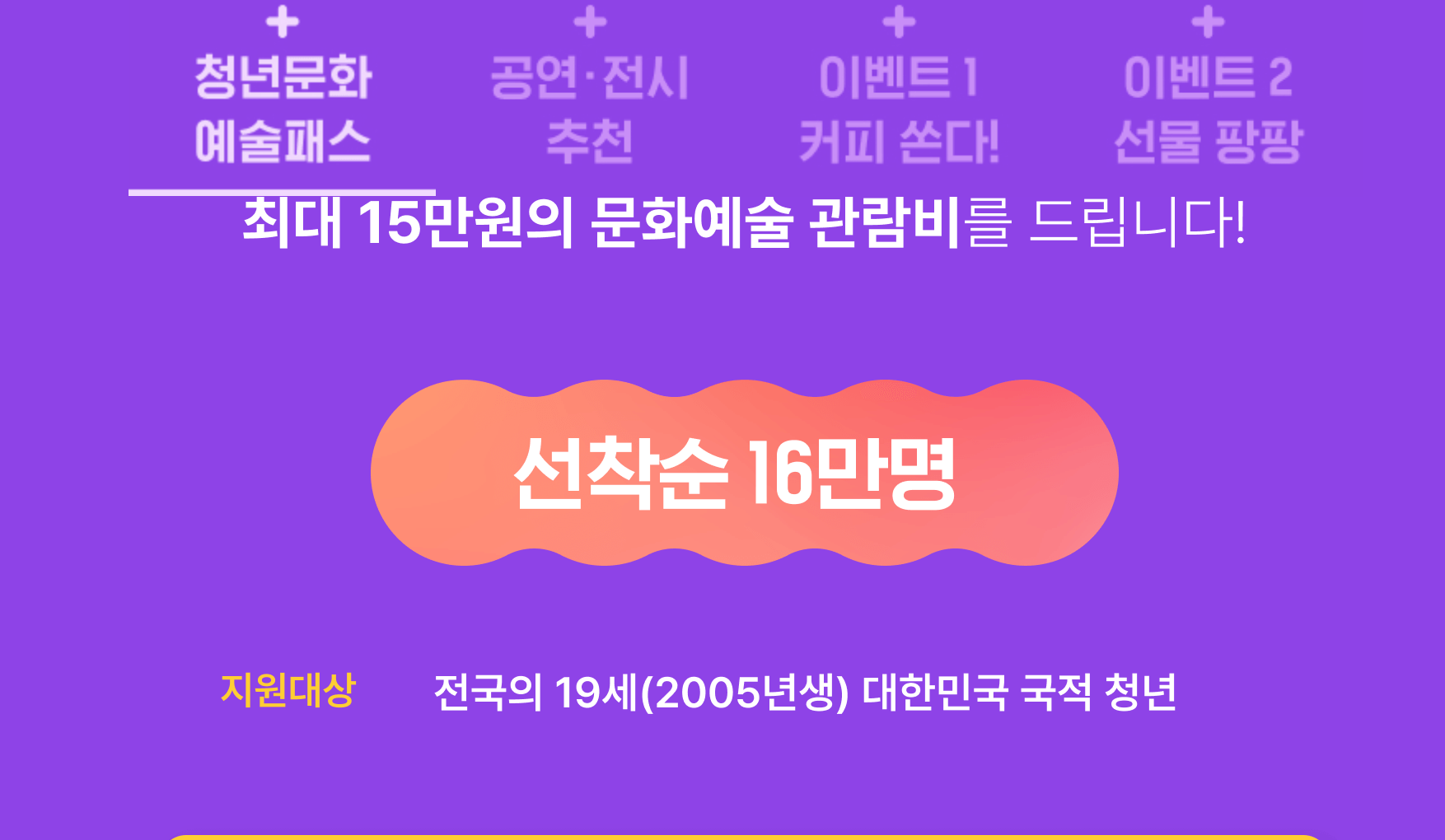 - 나이 : 전국의 19세 청년 누구나 (2005년생 19세만 가능)